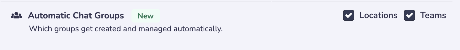 By default, Prospr automatically creates and manages Location-wide and Location/Team-specific chat groups based on each user’s profile details (their assigned Location(s) and Team(s)).