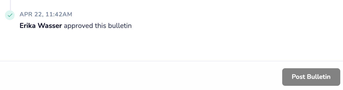 5) Once approved, the Manager who requested approval will receive a notification of approval. At this point, they can post it themselves OR after you click “Approve Bulletin”, you can choose to “Post Bulletin” directly.