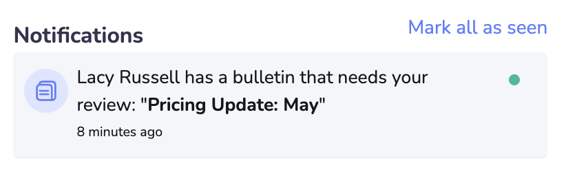 2) Click the notification or “Pending Review” button and you’ll have the chance to review, modify, and publish the Bulletin.