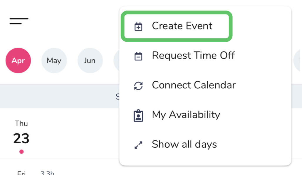 2) Use the dots in the upper right-hand corner to access your Calendar Menu and select “Create Event”.