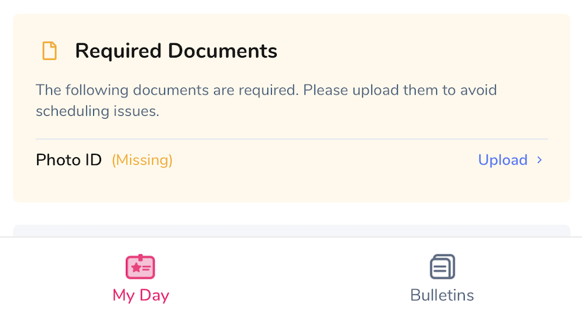 If you have pending required documents, your My Day section will also show this: